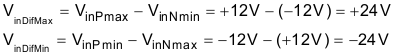 | VinP = –12V、VinN = +12V、VinMin (Dif) = –24V | VoutDif = -4.00V、VoutP = 0.25V、VoutN = 4.25V | 238E3H -11650910 |