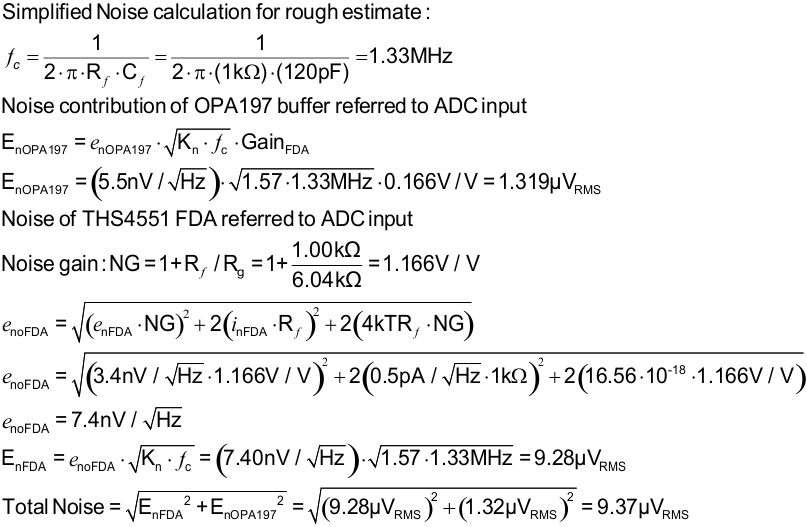 計算結果とシミュレーション結果はよく一致しています。この件の詳しい理論については、『Calculating the Total Noise for ADC Systems』を参照してください。