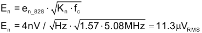 In this circuit example, the noise is dominated by the wide band amplifier noise so the resistors do not contribute significantly. Hence, the noise from the resistors is neglected in this calculation: