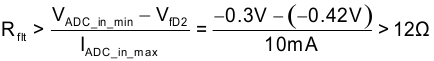| OPA828 maximum output current: | –50mA | Input current | –10mA | IADC_in_min |