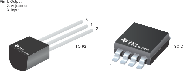 The LM337L is available in a standard TO-92 transistor package and a standard SO-8 surface mount package. The LM337L is rated for operation over a –25°C to 125°C range.